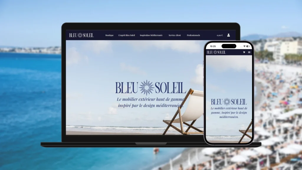 Ce projet a été réalisé dans le cadre de ma certification pour le titre professionnel de Concepteur Designer UI. Il s’agit d’une étude de cas fictive complète, conçue comme un projet 360° couvrant l’identité de marque, la stratégie digitale, le e-commerce et les supports print. Mon objectif était de créer un écosystème cohérent pour Bleu Soleil, une marque haut de gamme alliant design, durabilité et esthétique méditerranéenne.Le projet incluait également la réalisation d’un montage vidéo promotionnel, destiné à valoriser la station et ses atouts à travers un contenu audiovisuel dynamique et immersif, pensé pour une diffusion web et réseaux sociaux.